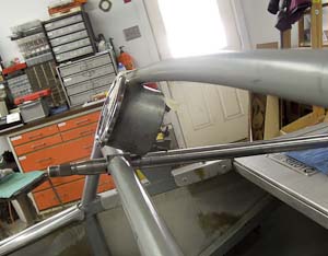 ![]() This is a new problem. The tachometer doesn't fit. Checking the dimensions against the Pat Prince drawings, the lower horizontal tube is the right height, but the upper (curved) tube is 1/2" too low. |